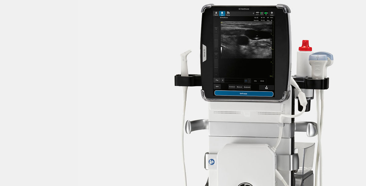 The intuitive touch user interface offers easy gel-and- go scanning – just select your probe and preset in one step. Designed for speed, it takes just moments to boot up and has no buttons, keyboard or knobs to slow you down when you’re scanning the patient or disinfecting the system.